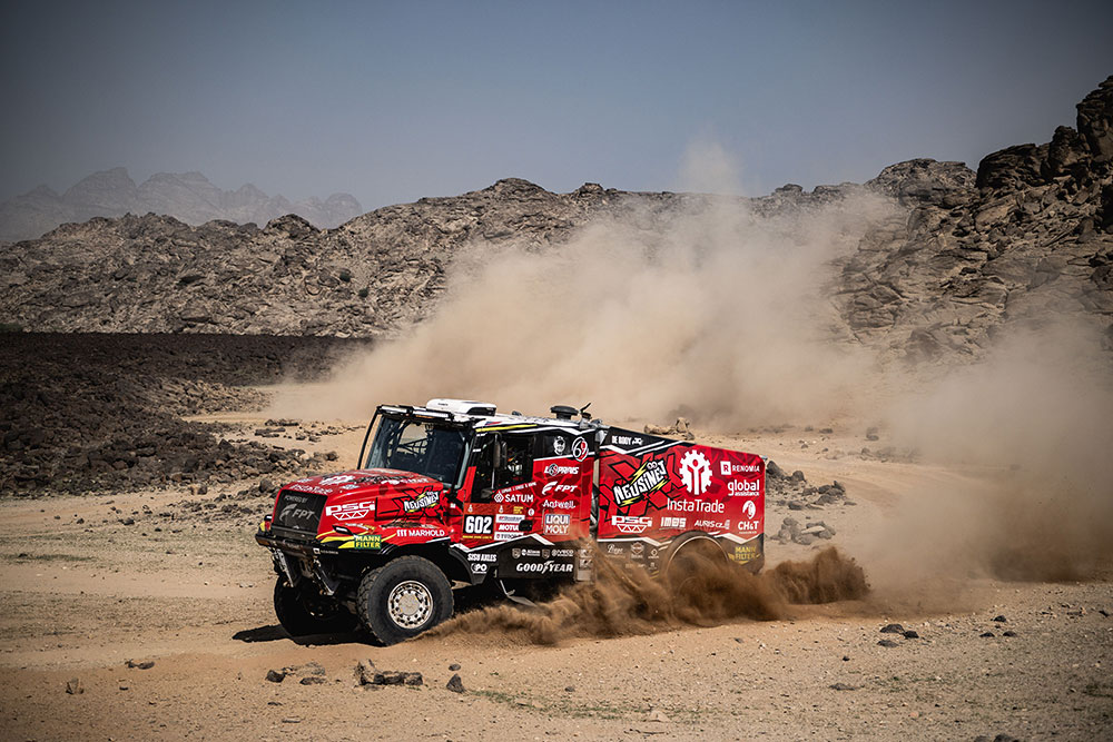 Červený Drak ve zlatém rouchu. Takhle Aleš Loprais pojmenoval svůj kamion před vítěznou etapou.