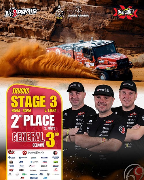 Po startu z páté pozice červený drak dnes ve 3. etapě doslova letěl na čele pole, souboj RED DRAGON ztratil až po dvou defektech těsně před cílem, přesto Aleš Loprais dojel se ztrátou pouhé 1:30 minuty na lídra a připisuje si nádherný výsledek.